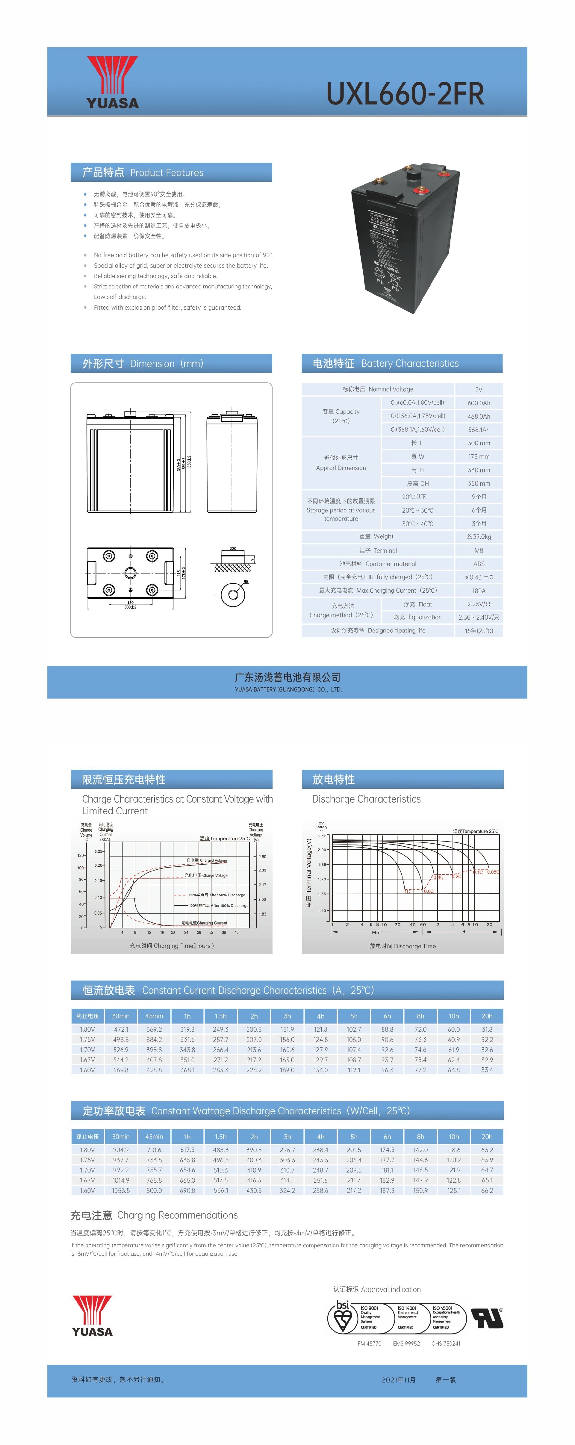 UXL660-2FR电池采用了先进的铅酸蓄电池技术,确保了电池的高效能和长寿命。其独特的电解液配方和先进的极板设计,使得电池在充放电过程中更加稳定,有效减少了电池损耗,从而延长了使用寿命。此外,汤浅蓄电池还采用了多重安全防护措施,确保了电池在各种恶劣环境下的安全稳定运行。
